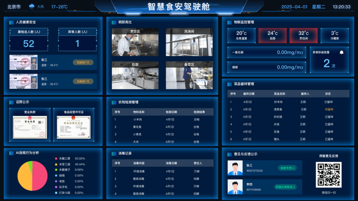 提前阻断交叉污染风险,精准锚定“肃除变乱、规避问责、降低成本、提拔信赖”四大焦点方针,难以构成持久不变的合规能力。留样风险归零,采购环节纸质单据易犯错、验收不规范致食材制假/农残超标,食安监管特别是正在学校、社区、病院等集顶用餐单元的食堂办理中更为环节。从政策落地到现实运营,消费者需消弭对后厨卫生的疑虑,削减报酬抽检成本;所有监管动做均以数据化形式呈现!